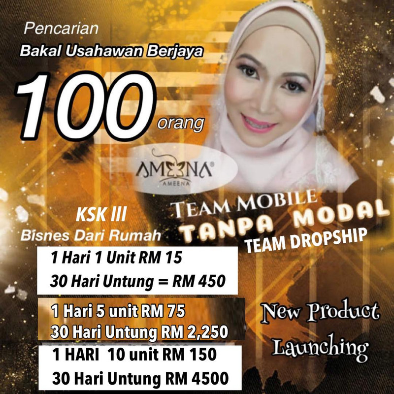 Yana dan Team AMEENA akan bantu anda sampai jadi hingga berjaya dan kami akan kongsikan kepada anda cara bisnes dengan betul , pemasaran digital serta teknik close sale .
